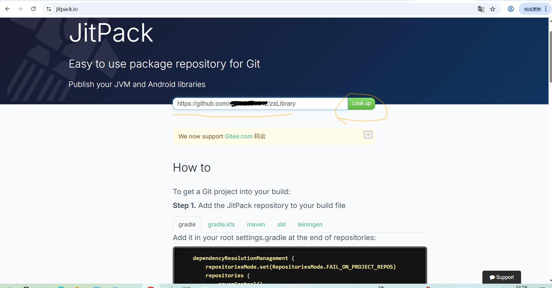 再去JitPack一键发布. 网址为:https://jitpack.io/ , 把仓库地址输入: