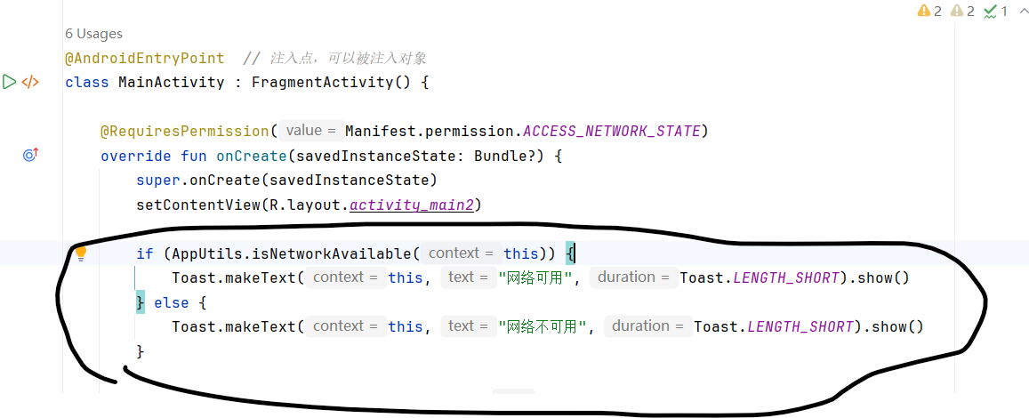 @RequiresPermission(Manifest.permission.ACCESS_NETWORK_STATE)