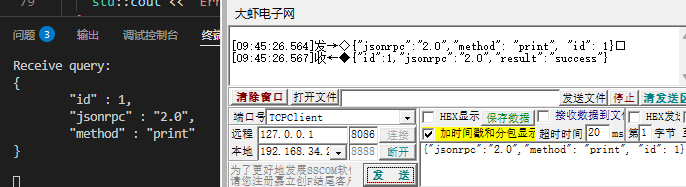Print 是最简单的 RPC 方法------收到请求后打印内容,并返回 "success":