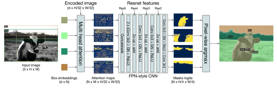 图 8:全景式头部的示意图。针对每个检测到的物体,都会同时生成一个二值掩码,然后通过像素级的"最大值"运算将这些掩码合并起来。