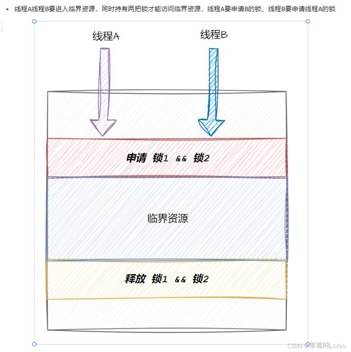 - 破坏循环等待条件 :最常用的方式,保证所有线程加锁顺序完全一致;一次性申请所有需要的资源;用
