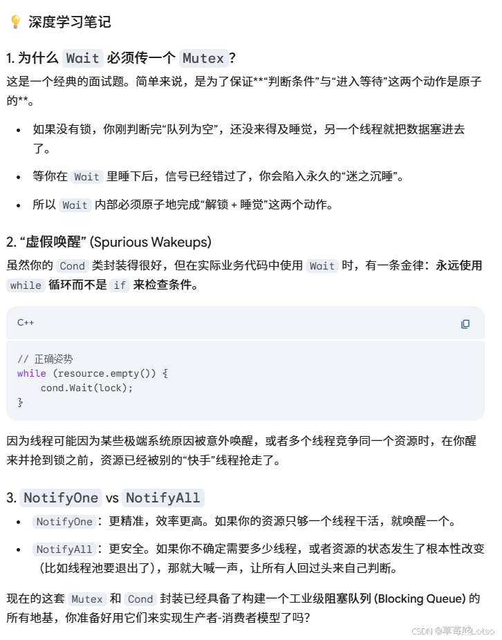 - [3.1 基础组件:RAII 风格的互斥锁与条件变量封装](#3.1 基础组件:RAII 风格的互斥锁与条件变量封装)