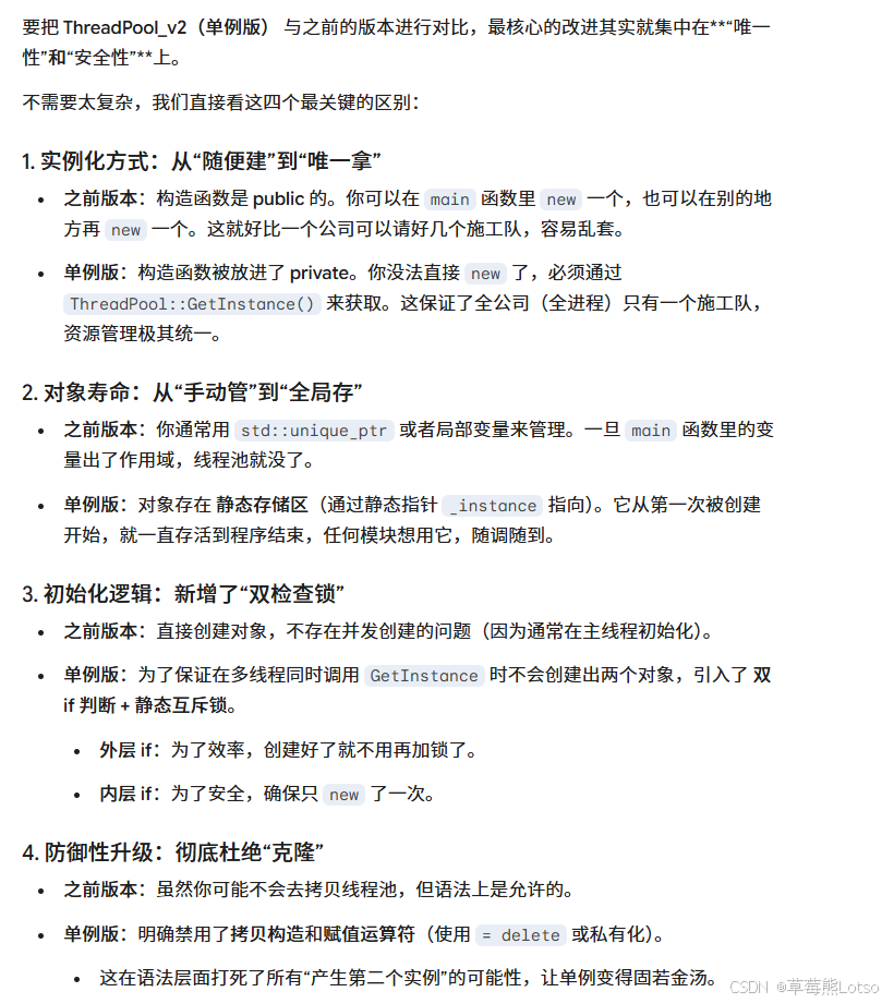 * 答:因为在 ThreadPool_v2 中,我们将构造函数设为了 private。