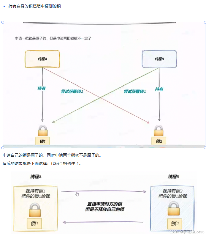 请求与保持条件 :线程申请新资源阻塞时,不释放已经持有的资源;