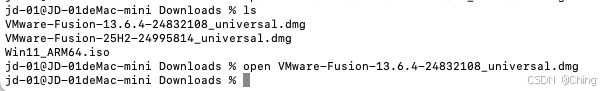 2、安装=使用终端进入下载目录,使用open打开VMWare