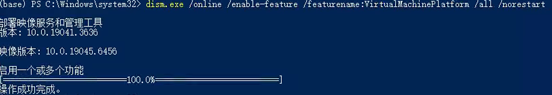 dism.exe /online /enable-feature /featurename:VirtualMachinePlatform /all /norestart