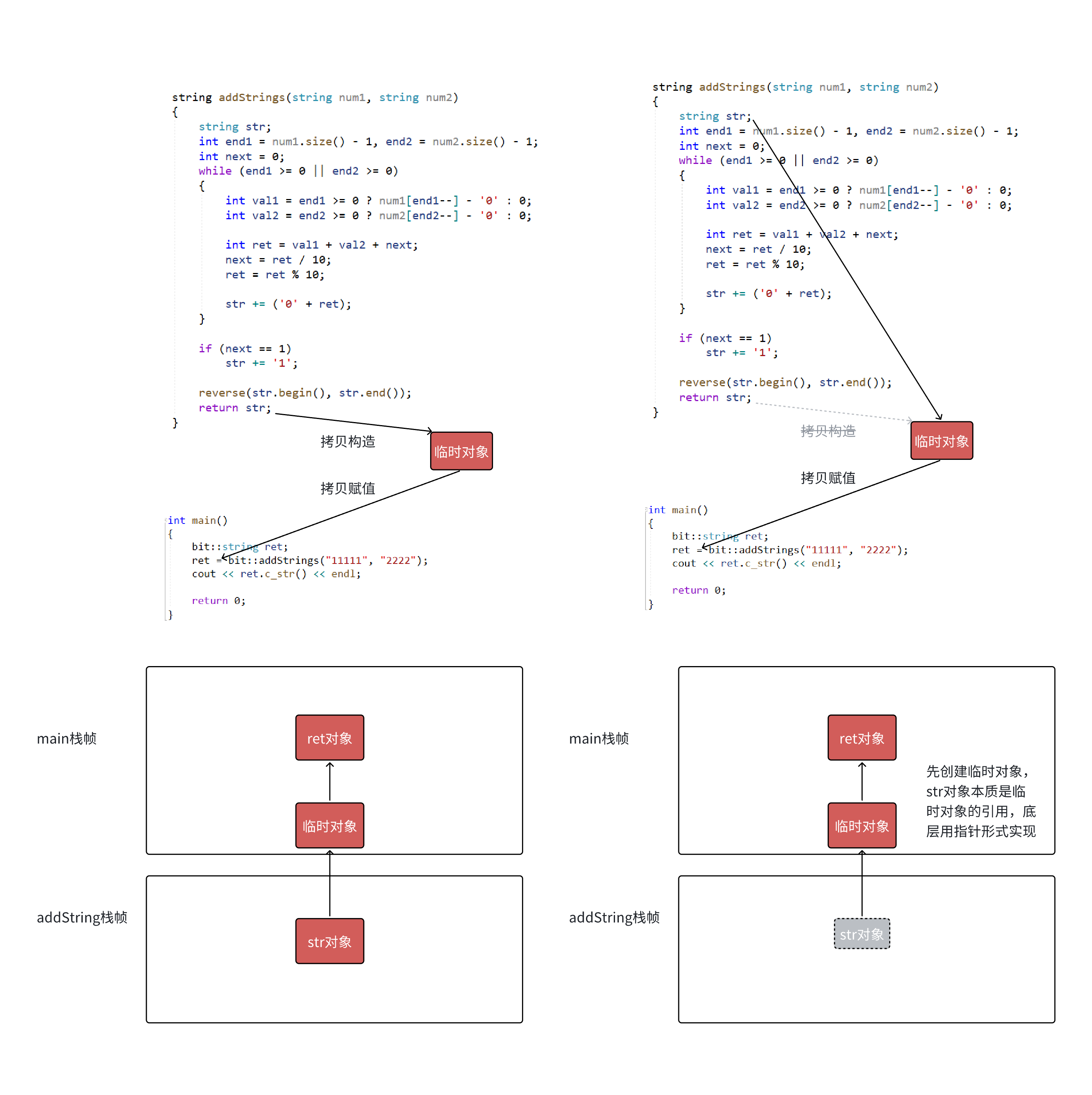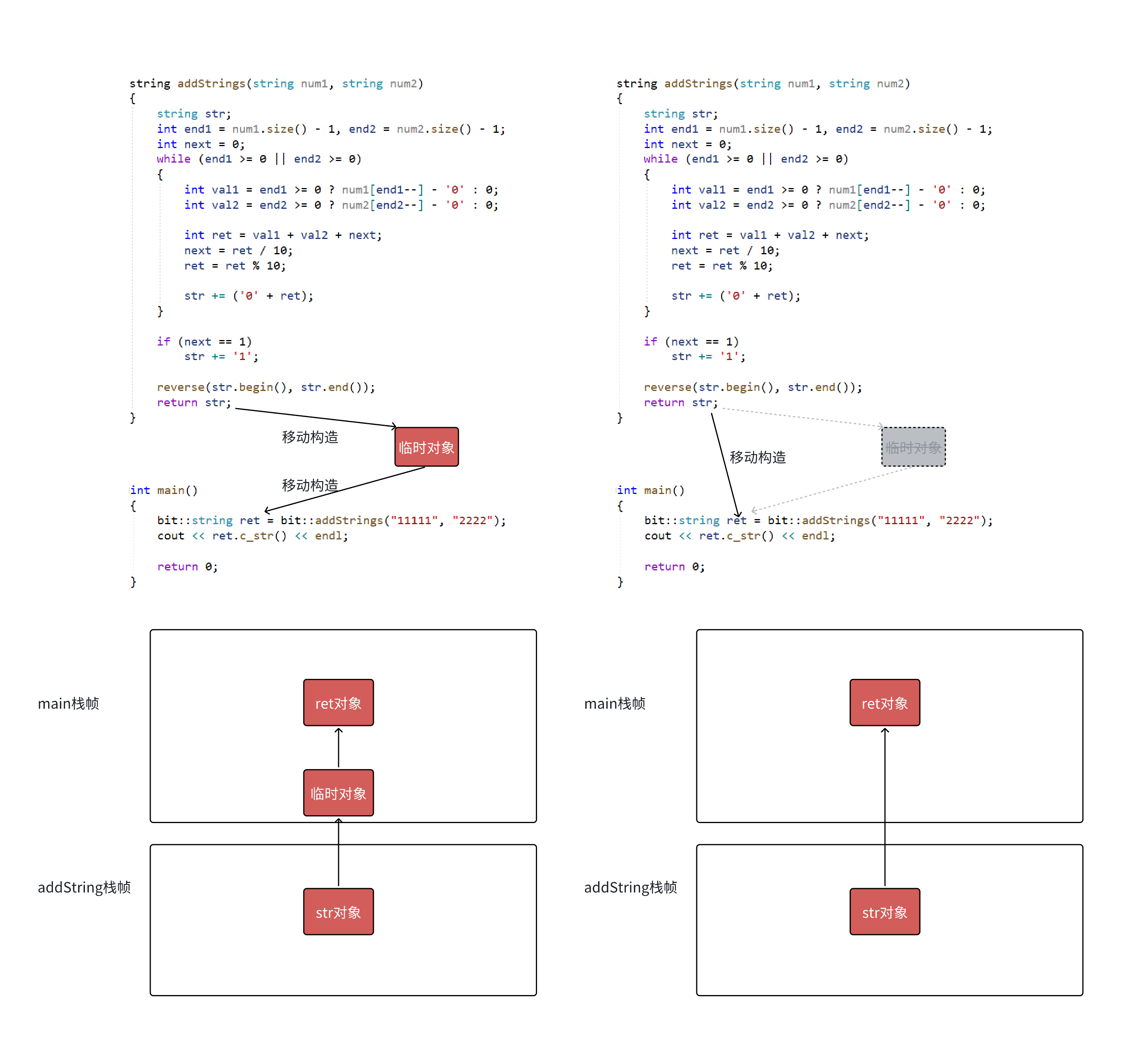 - 需要注意的是在vs2019的release和vs2022的debug和release,下面代码优化为非常恐怖,会直接将str对象的构造,str拷贝构造临时对象,临时对象拷贝构造ret对象,合三为一,变为直接构造。要理解这个优化要结合局部对象生命周期和栈帧的角度理解。