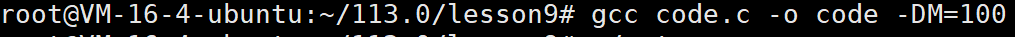 可以在文件外进行宏定义,这里定义的是M=100 -o是形成可执行文件