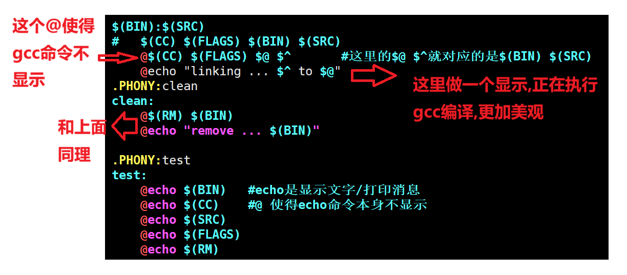 想要执行clean就使用make clean,一般可执行的编译在第一位make就直接执行第一个,