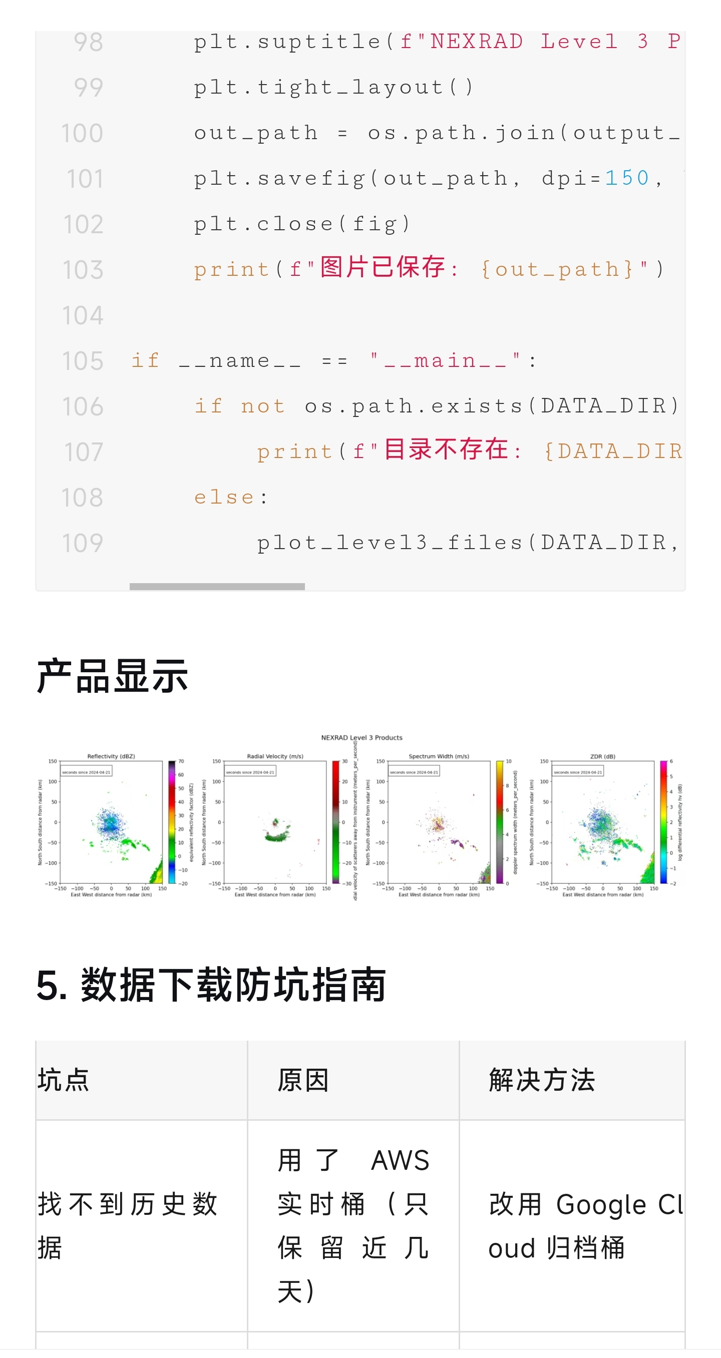 完整数据下载脚本和解析代码请点击开源雷达NEXRAD Level 3 数据完整获取与 Python 处理教程