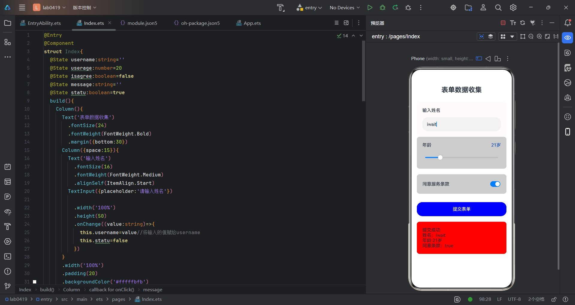 this.message=`提交成功\n姓名:${this.username}\n年龄:${this.userage}岁\n同意条款:${this.isagree}`