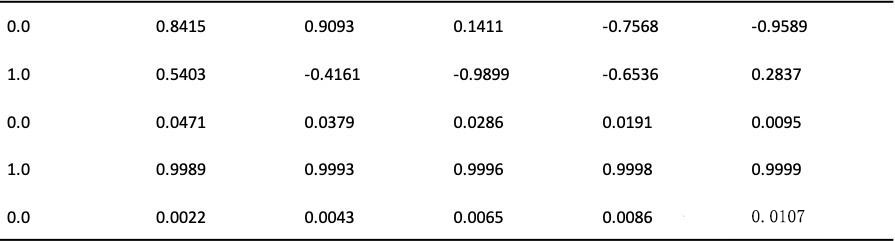 假设d_model=5,即token的embedding的维度是5;token的个数是6。使用正弦-余弦位置编码 结果如下: