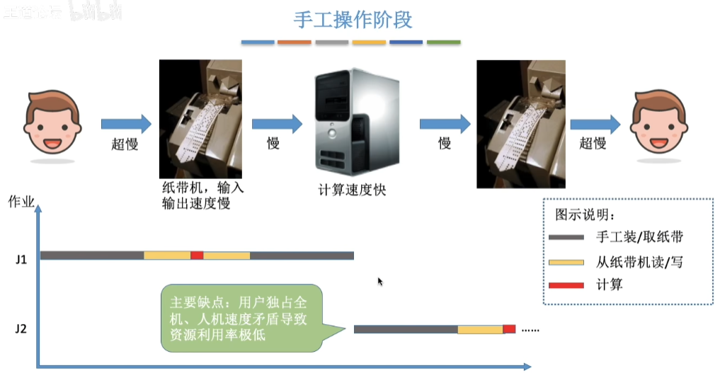 手工操作阶段有两个突出的缺点: