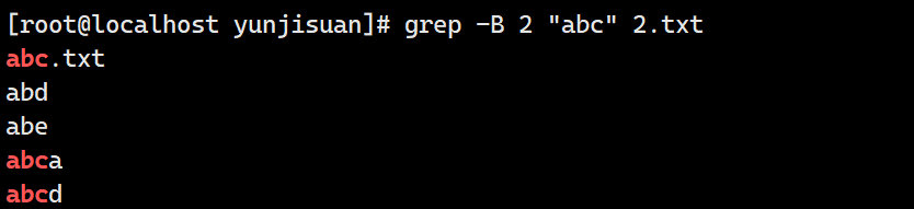 -B x "过滤的字符" 文件名 显示含有过滤的字符的前x行
