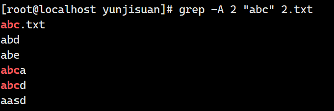 -A x "过滤的字符" 文件名 显示含有过滤的字符的后x行