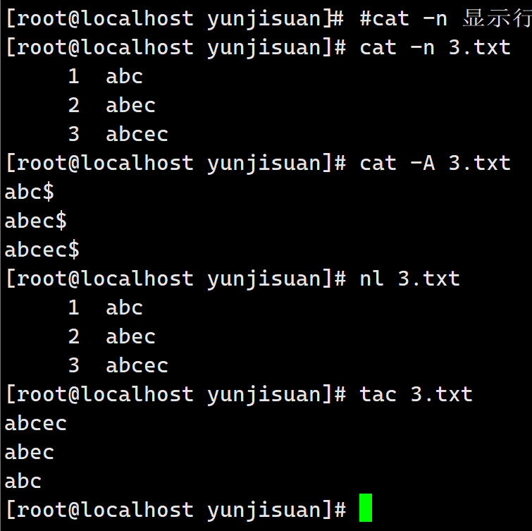 cat -n 显示行号