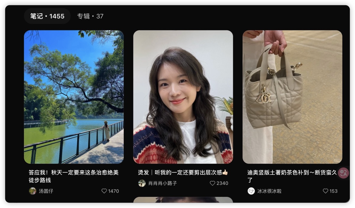 我老婆是一个典型的小红书重度用户。她的收藏夹里有超过 1400 条笔记:化妆教程、穿搭攻略、旅行路线、家居改造、美食菜谱......应有尽有。