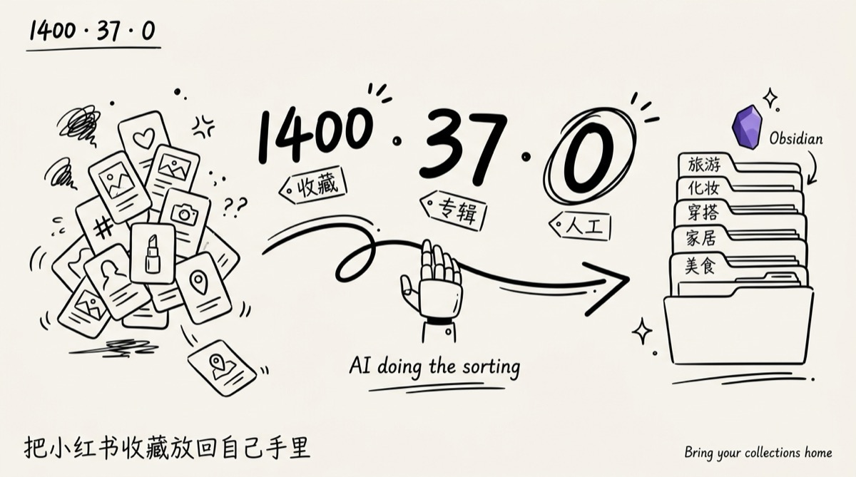 1400 条小红书收藏 · 37 个专辑 · 0 人工:我把 AI 分类塞进了 Obsidian