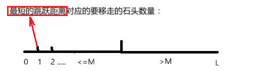 思路 : 如果我们知道最短的跳跃距离,要求我们算出要移走的石头数量