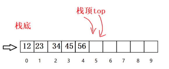 - 栈顶下标:整型变量,实时标记当前栈顶元素的位置,是控制入栈、出栈的核心标识