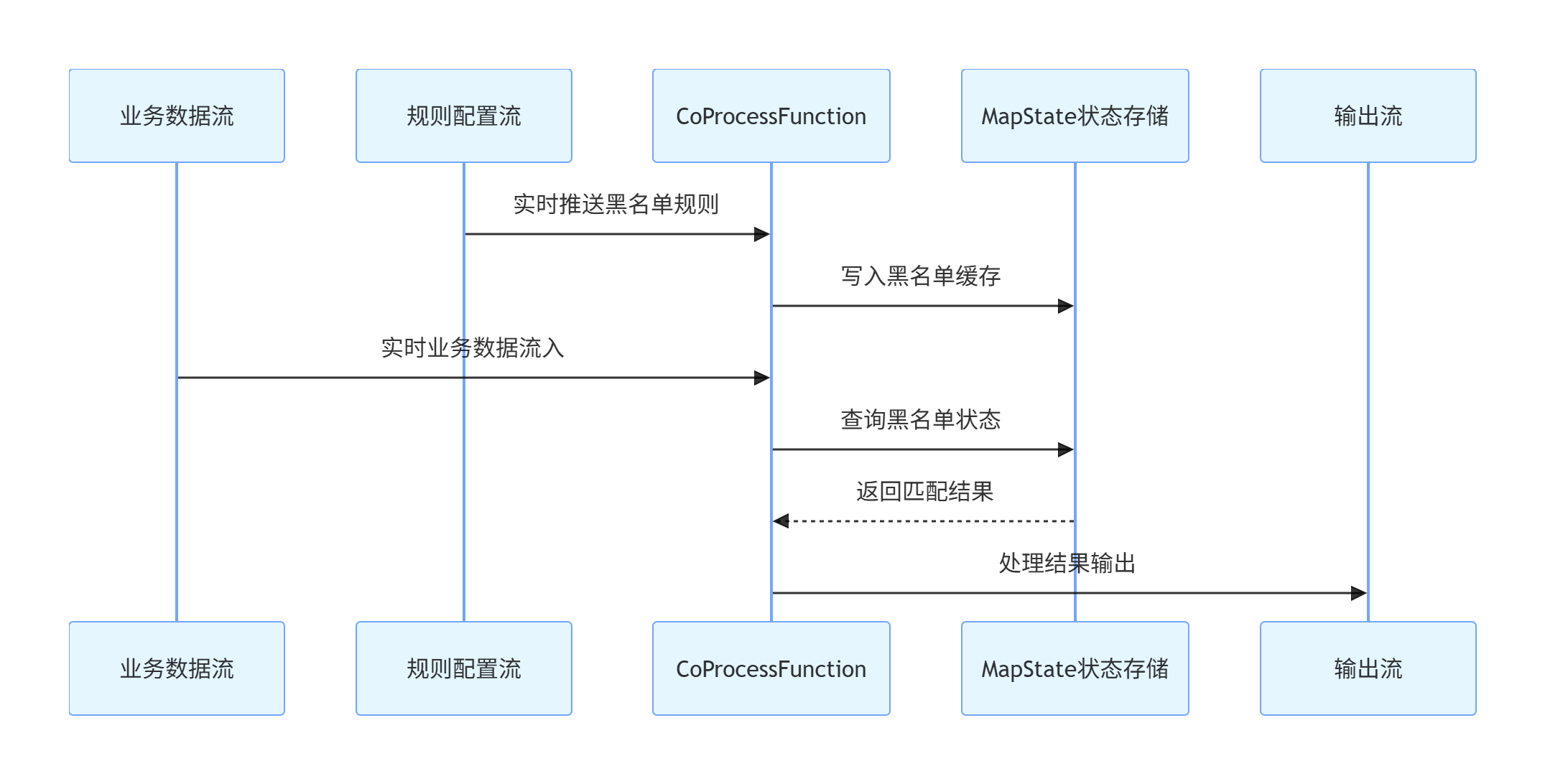 connectedStream.process(new CoProcessFunction<PayOrder, BlackListRule, RiskResult>() {