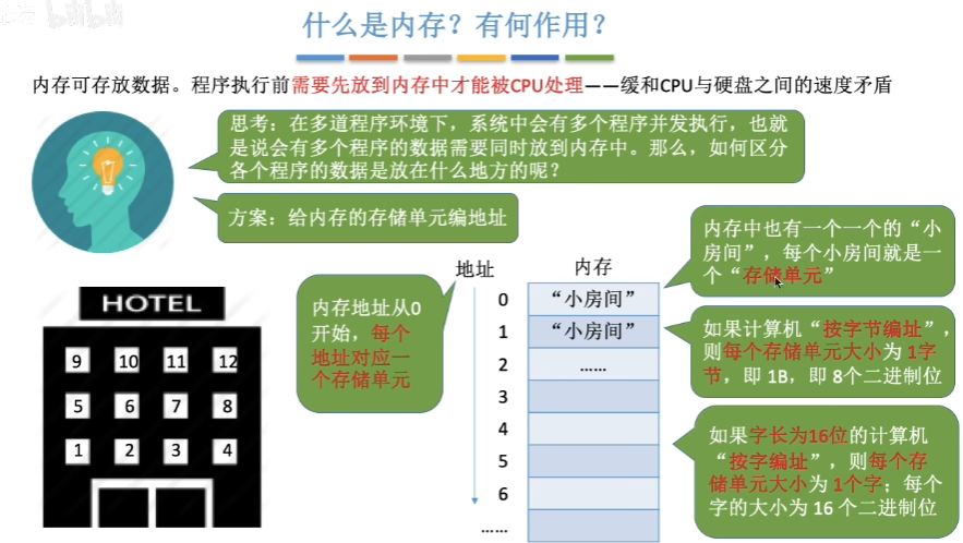 为了区分各个程序的数据在内存里的存放位置,就要给内存编号,这就是内存地址。内存地址是从0开始,每个地址对应一个存储单元。