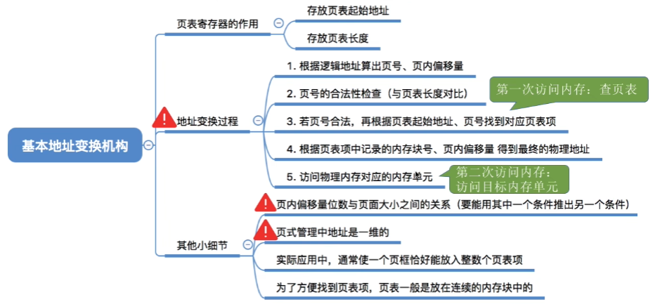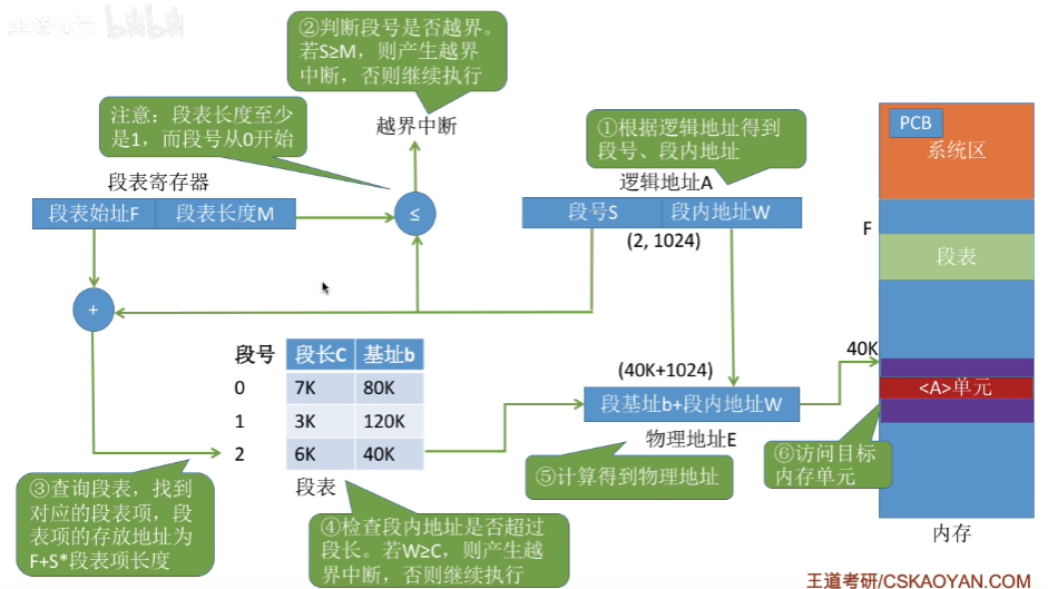 段页式存储如何实现逻辑地址与物理地址的转换如上图,这里转换过程看图即可。除了转换过程,还要注意访存的次数以及位置,可以根据上图理解。