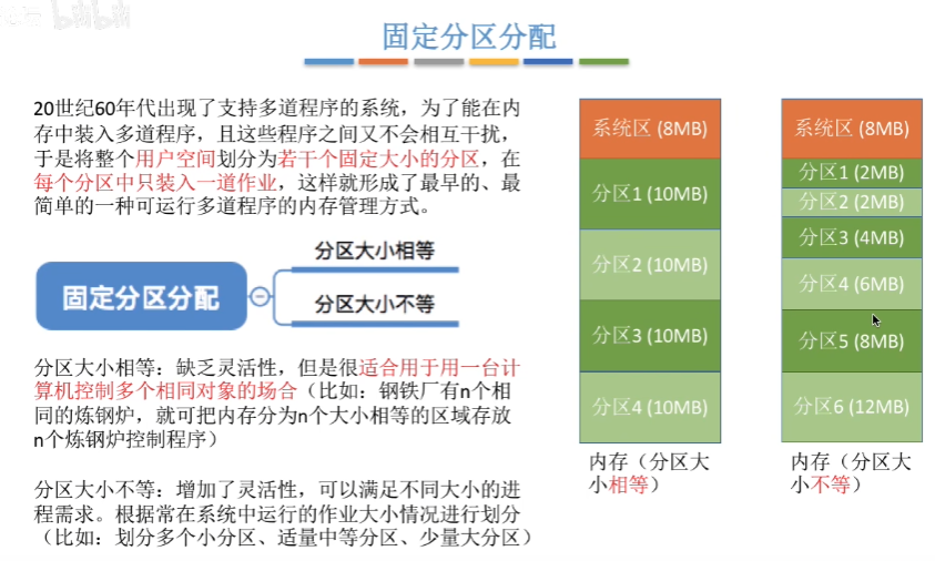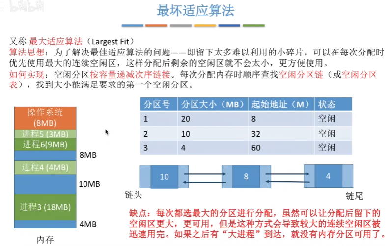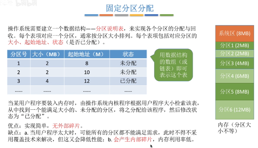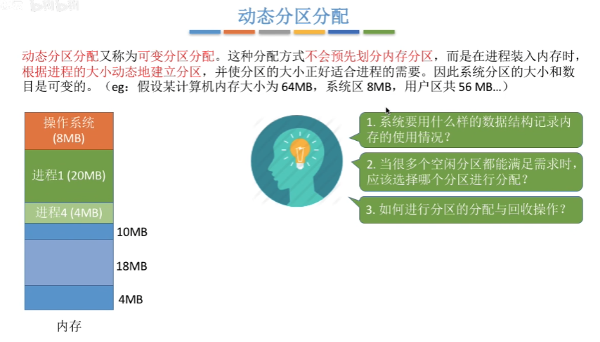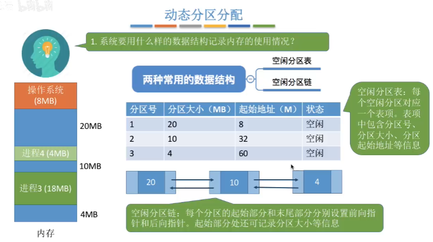 除此以外,动态分配方式还有很多的优点,可参考上图,这里可能有不理解的地方,可以等学完虚拟存储部分再回来理解。