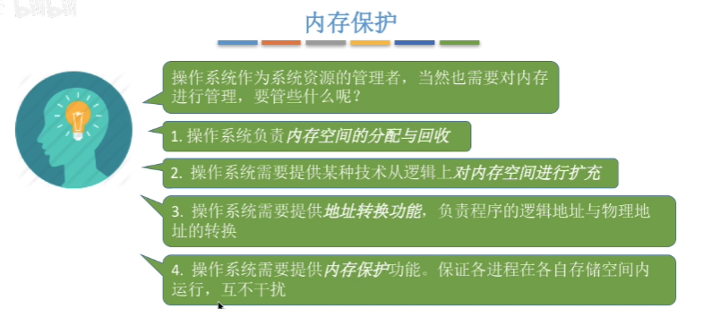 内存管理的第四个功能是提供内存保护。即保证各进程在各自存储空间内运行、互不干预。