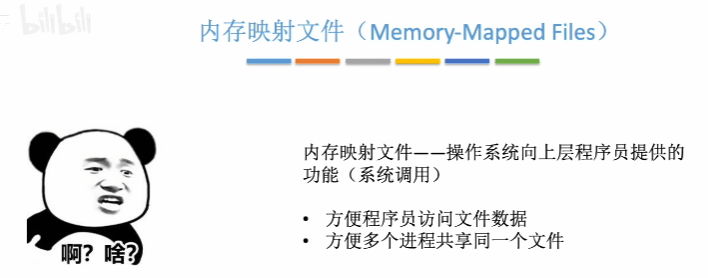 如果支持内存映射文件,程序员可以使用open系统调用打开文件。接下来使用mmap系统调用,让操作系统把文件映射到进程的虚拟地址空间,这个调用会给程序员返回一个指针,这个指针指向刚刚映射区域的起始地址,接下来就可以用访问内存的方式访问文件数据(根据起始地址加上偏移量去访问后面的数据)。