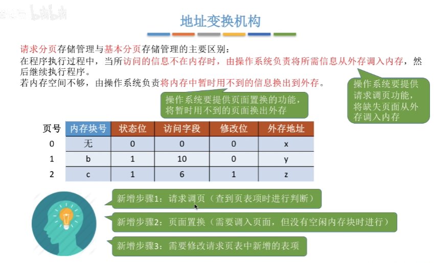 为了实现请求调页功能,系统中需要引入缺页中断机构,接下来看一下缺页中断机构知识: