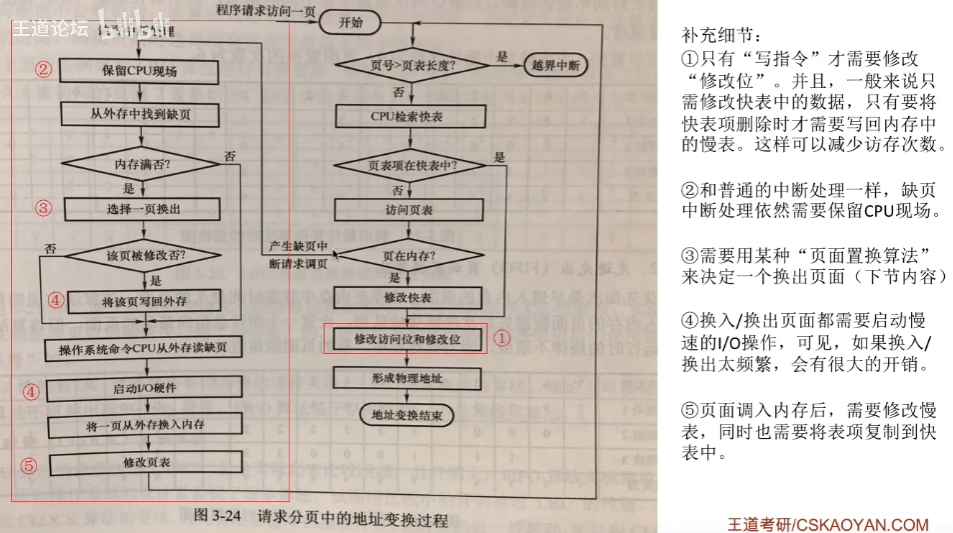 请求分页管理的执行过程大体上基本分页一致,但要注意前面所说的几个要增加的地方。