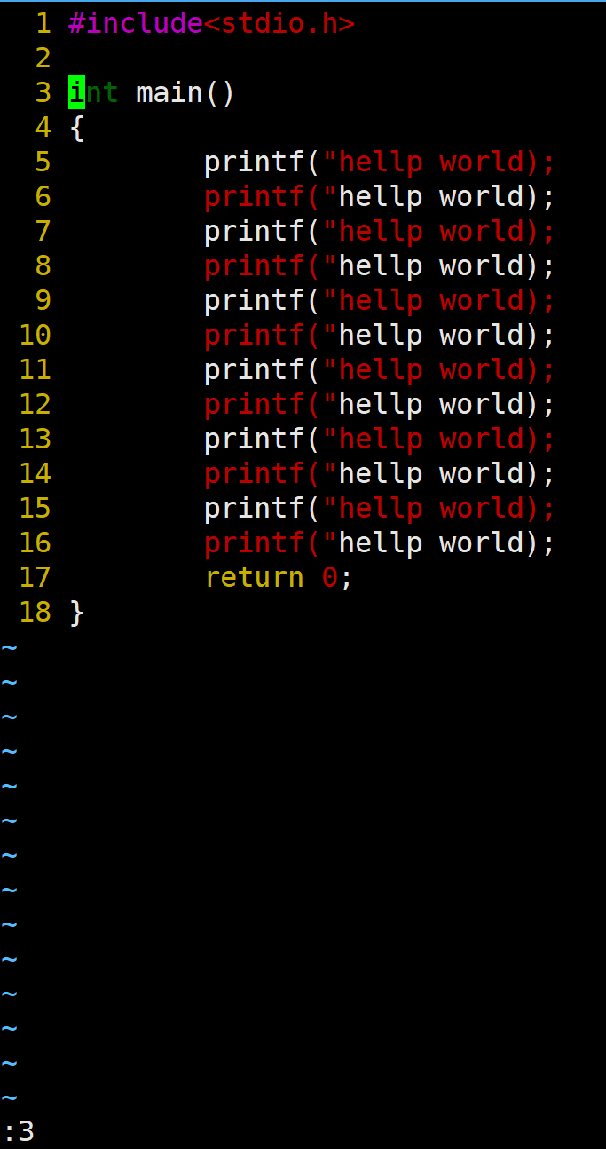 和window环境下能使用鼠标的情况不同,Linux默认vim的normal模式下是不允许使用鼠标来操做的,所以我们要学会使用键盘来实现定位(尽管后续可以添加这个功能)