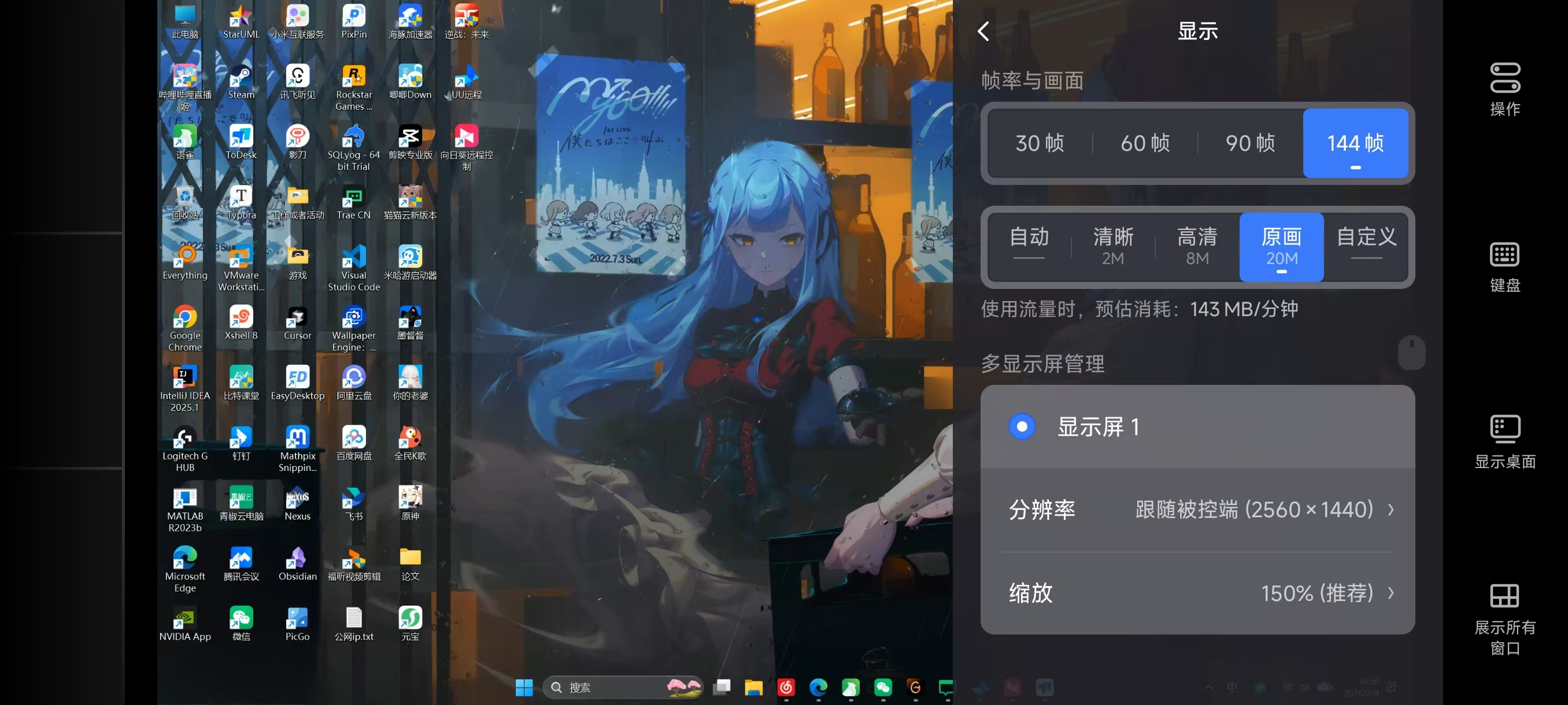 网易UU远程: 本次我们专门针对移动端进行了画面专项实测:在千兆 Wi-Fi 最优网络环境下的日常办公场景中,免费版画面帧率最高可稳定 144Hz,画质支持拉满至接近原画。手机端显示清晰锐利,无需用户手动切换调整。无论是滑动页面、切换窗口还是实时输入文字,流畅度与清晰度都表现突出,操作即时性几乎与本地操作无异。