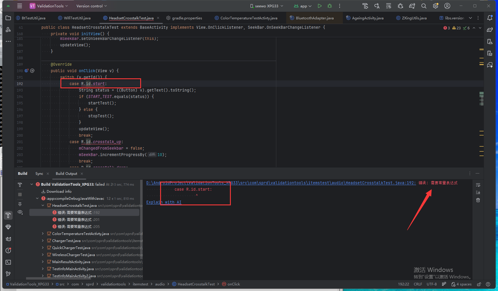 D:\AndroidProject\ValidationTools_XPG33\src\com\sprd\validationtools\itemstest\audio\HeadsetCrosstalkTest.java:192: 错误: 需要常量表达式