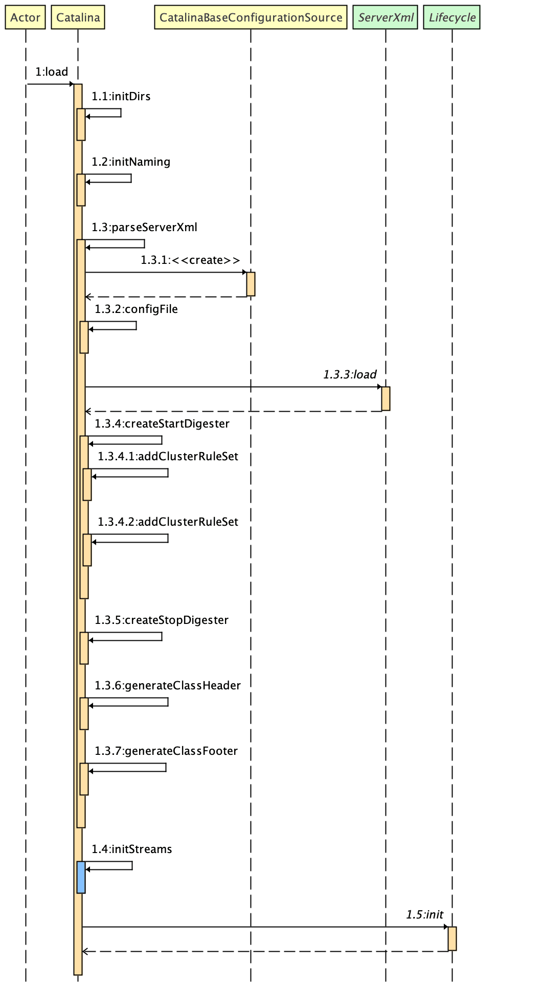 Catalina 类承接了 Bootstrap 类的 load 和 start 方法,然后根据配置初始化了 Tomcat 的组件,并调用了 Server 类的 init 和 start 方法来启动 Tomcat。
