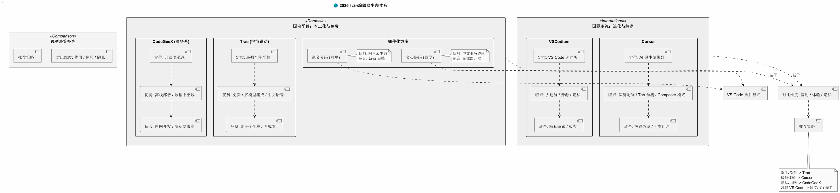 在 2026 年,代码编辑器的竞争焦点已经从单纯的"轻量级"转向了"AI 原生体验"。以下是分类推荐: