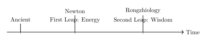 (时间轴:古代→牛顿(第一次飞跃:能)→融智学(第二次飞跃:智))
