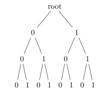 (树形图:根节点为第0阶,第一层0和1,第二层00,01,10,11,第三层八个节点,可分别标注成为:"第1阶""第2阶""第3阶")