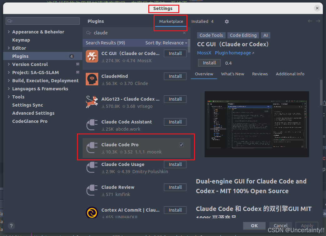 1.1 在pycharm中安装claude code插件