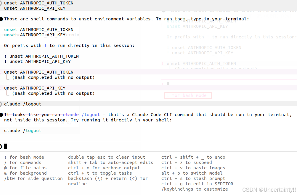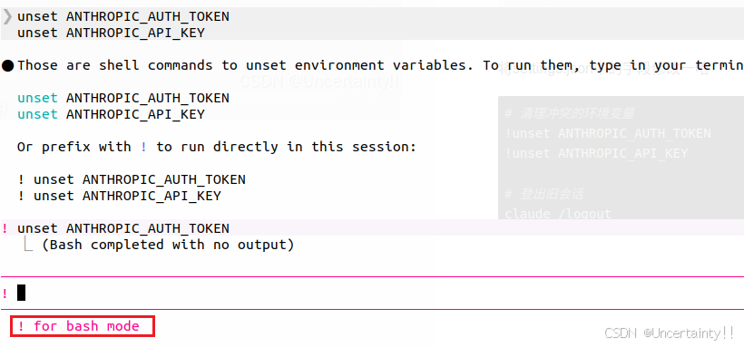 !unset ANTHROPIC_AUTH_TOKEN
