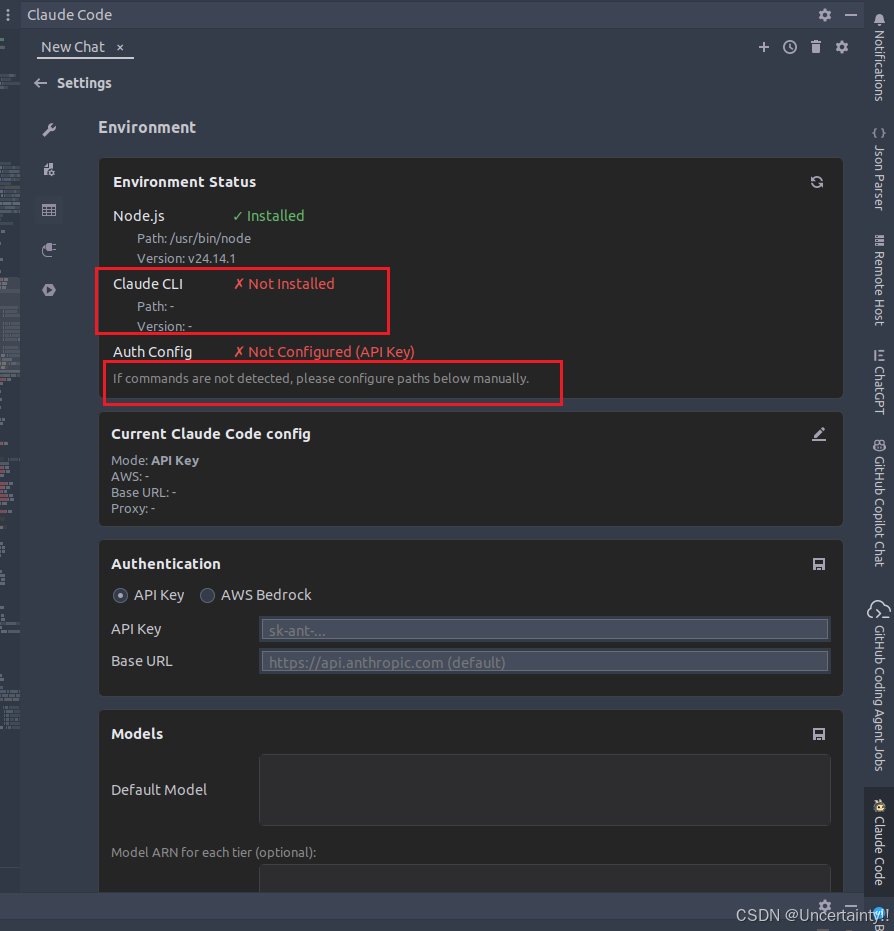 我打开pycharm claude code插件后显示not installed,没有检测到,需要手动配置环境变量路径