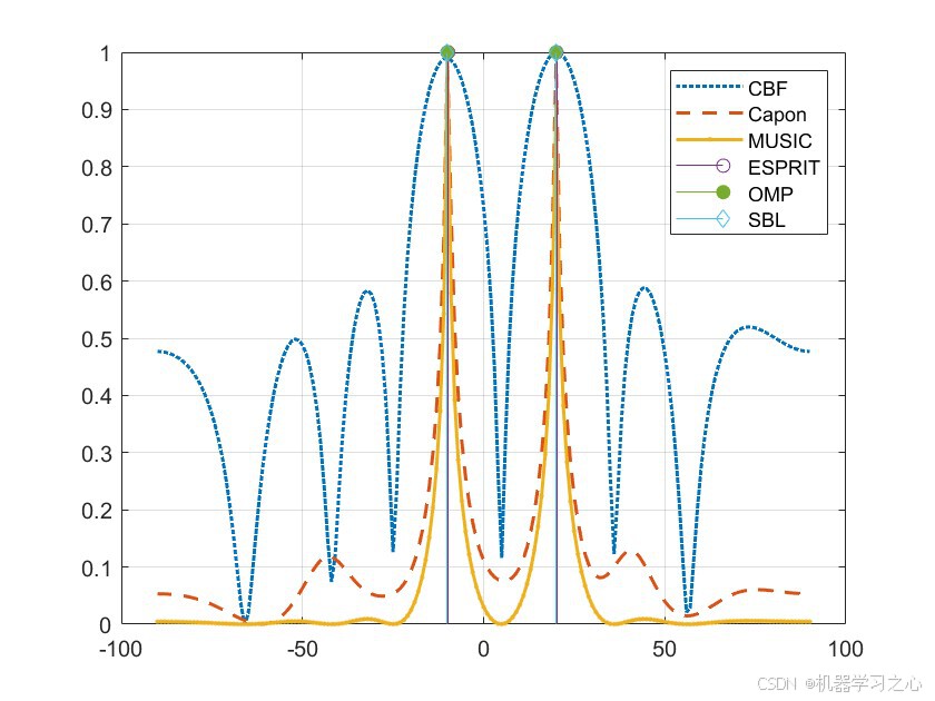 - 对CBF、Capon、MUSIC得到空间谱,利用
