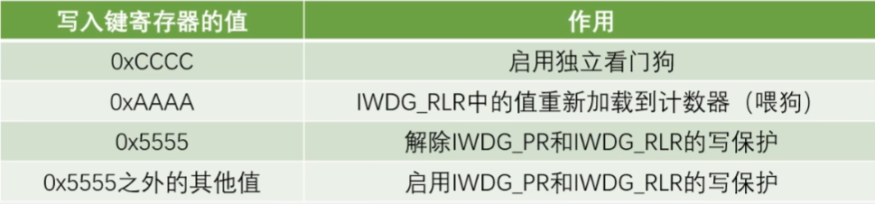 - 看门狗可以监控程序的运行状态,当程序因为设计漏洞、硬件故障、电磁干扰等原因,出现卡死或跑飞现象时,看门狗能及时复位程序避免程序陷入长时间的罢工状态,保证系统的可靠性和安全性