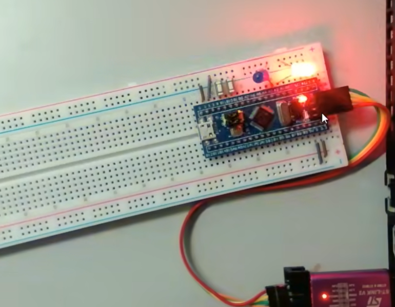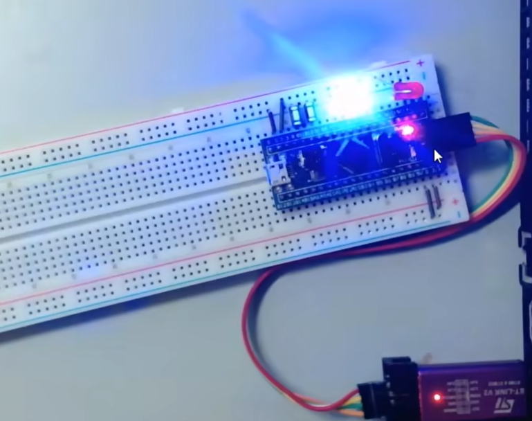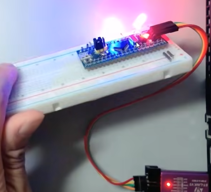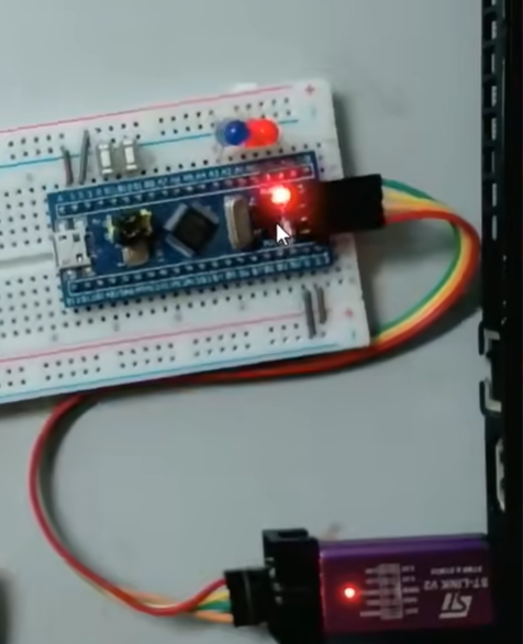 可以看到led亮起来了,因为gpio配置好了之后默认就是低电平,所以还没有操作LED就亮起来了