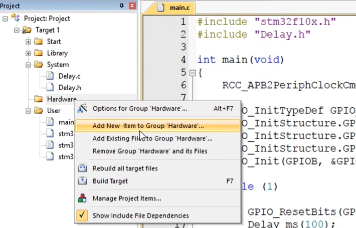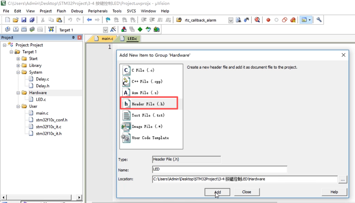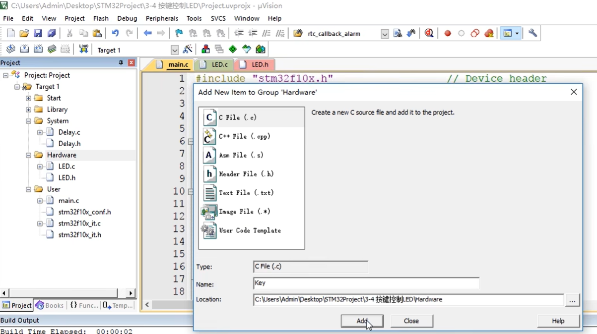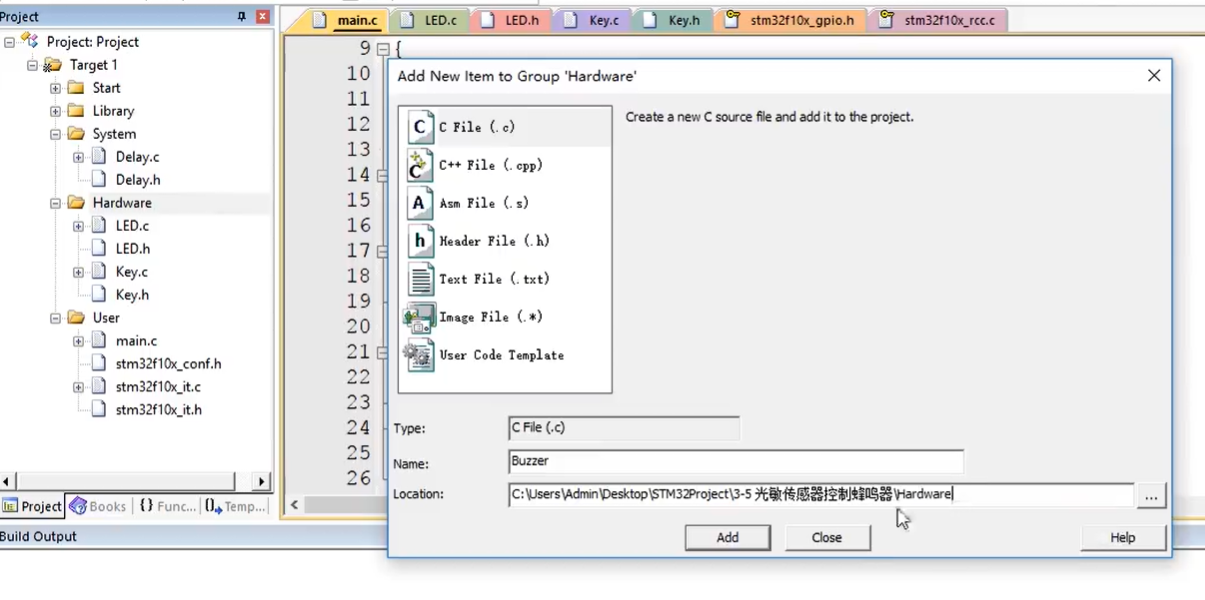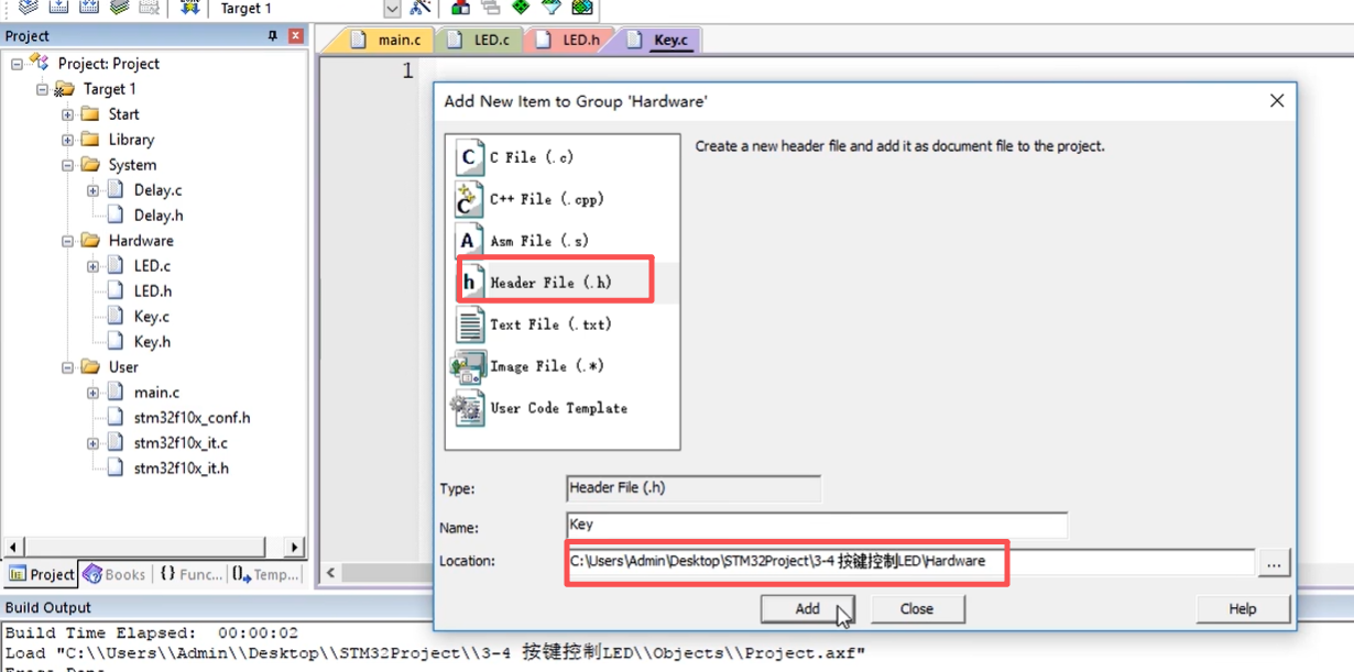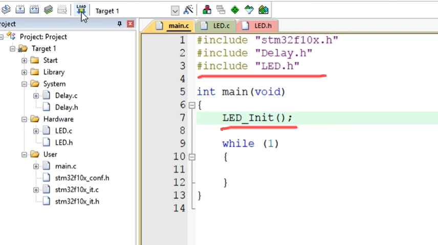 下面完成led和按键的驱动代码,这两部分驱动代码都混到主函数里面,代码太乱了,对于驱动代码而言,一般封装起来,单独放在.c和.h里,模块化编程方式: