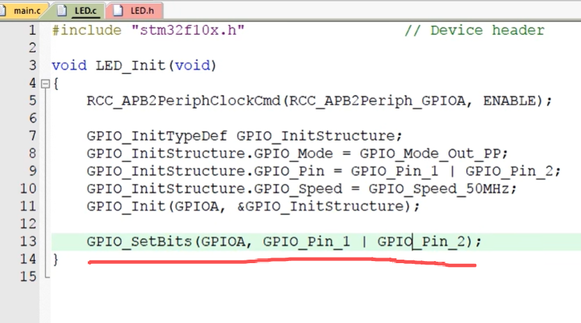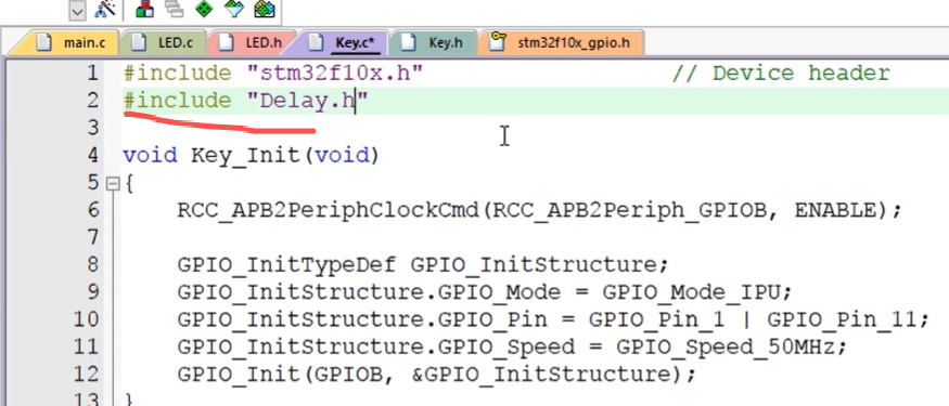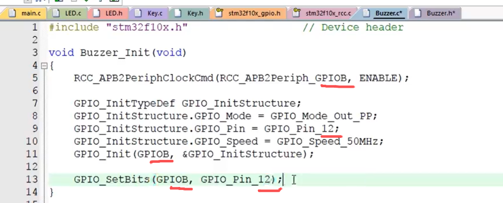 最后调用 GPIOInit的函数,第一个参数是 GPIO B, 初始化 GPIO B外设。第二个参数是结构体变量名,前面加上取地址的符号。