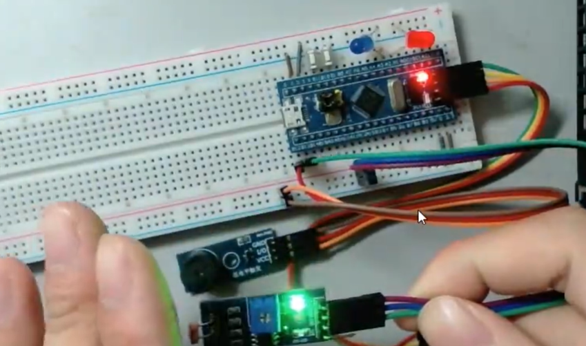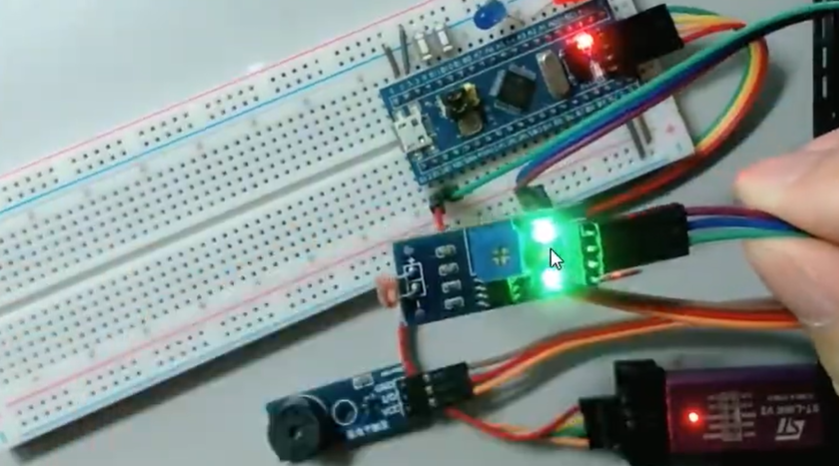 就实现了遮住光明电阻,蜂鸣器响,拿开,不响