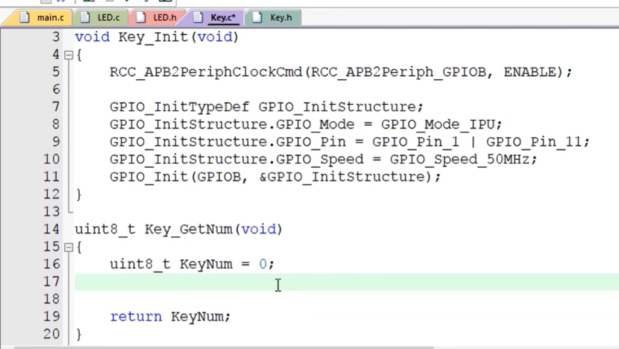 接着我们再来写个读取按键值的函数。我们在这下面写上