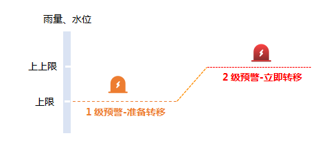 ◆ 预警发布内容包括水雨情信息、预警等级、准备转移通知、立即转移命令等